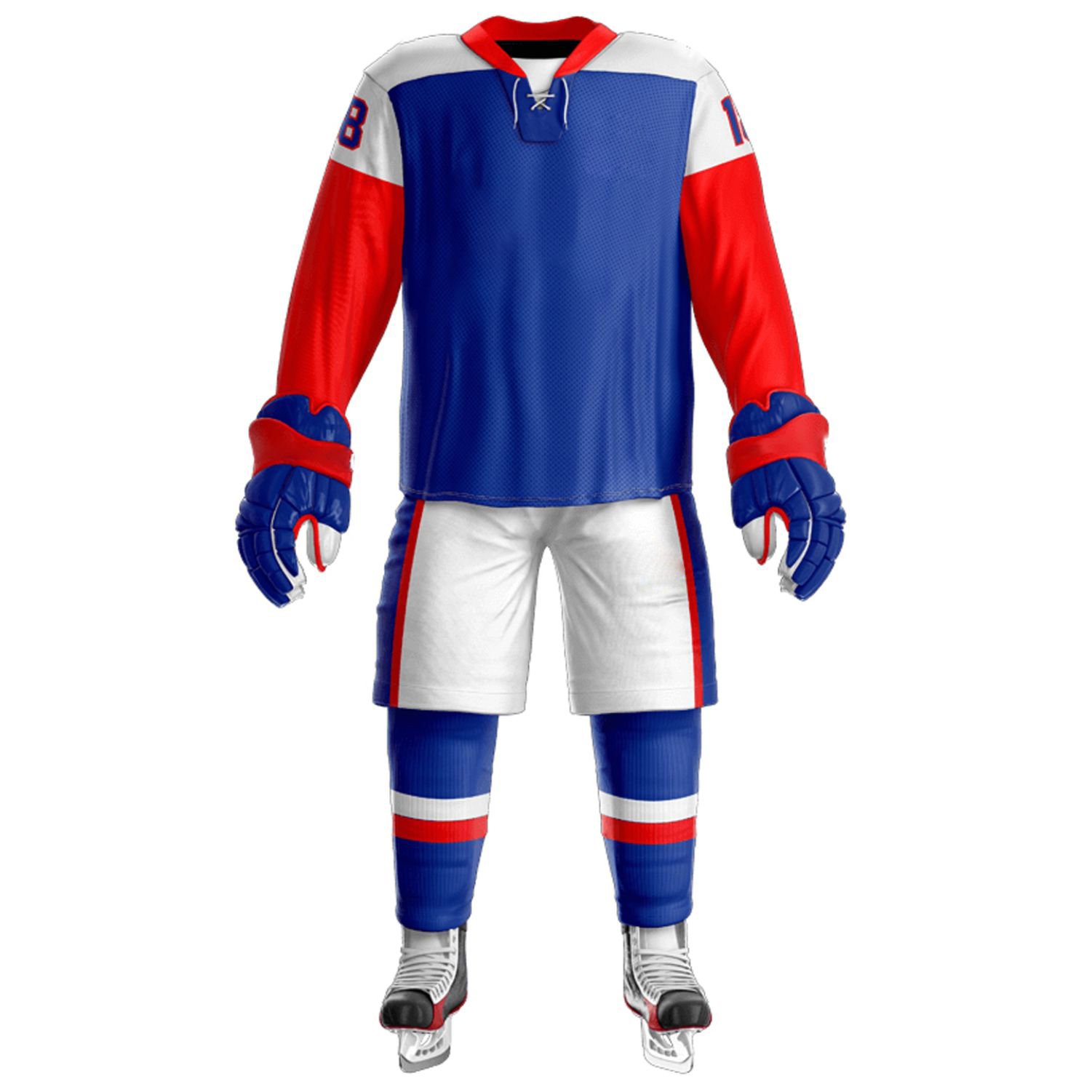 Players in the National Hockey League wear equipment which allows their team affiliation to be easily identified, unifying the image of the team. Currently, a NHL uniform consists of a hockey jersey, hockey pants, socks, gloves, and a helmet. All players shall wear numbered uniforms. It is required that all players be numbered with at least 10-inch high Gothic, colored numbers on the back of their jerseys and the same numbers at least 4 inches in height on both sleeves of the jersey. The color of the numbers shall contrast with the color of the jersey.